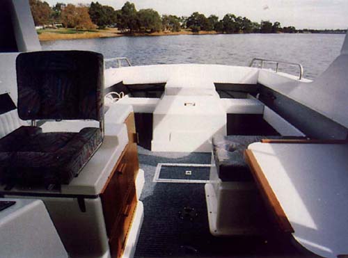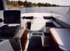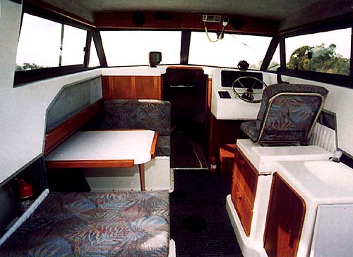 The main command station is to starboard in the plushly trimmed saloon.